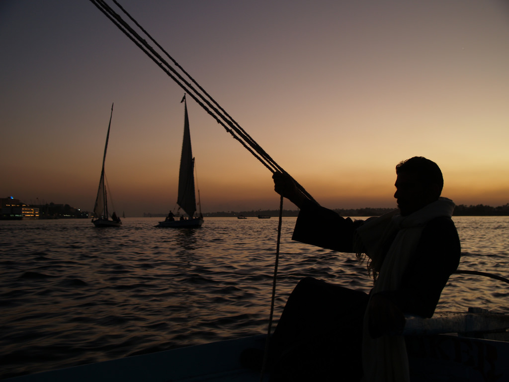 Late afternoon, our representative will pick you up from your hotel in Luxor, and transfer to the Nile side, where your Felucca is waiting for you journey. Board your boat and relax on the soft cushions. Experience the peace and tranquility of the Nile water that has been the lifeblood of Egypt since Pharaonic times. Enjoy a cool drink as you gently glide down the river. Watch the real Egyptian life pass by and enjoy the fantastic scenes that have not changed in millennia, the children playing in the water, the camels and donkeys, the farmers going about their work in the same ways they have done for centuries, and admire the water buffalo and a wide variety of birds. The felucca will sail to the Banana Island "an Island covered with banana plantations" the boat captain will berth the felucca off the island and take you on a short exploratory tour of the island, where you’ll be offered a refreshing cup of traditional Egyptian tea and some of the sweetest, most delicious bananas you have ever tasted. Continue sailing and watch the sun sets slowly over Luxor West Bank, take in the scenes of life around you as you sail along the Nile, back to the Nile side and then transfer to your hotel in Luxor.