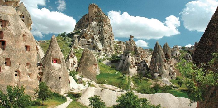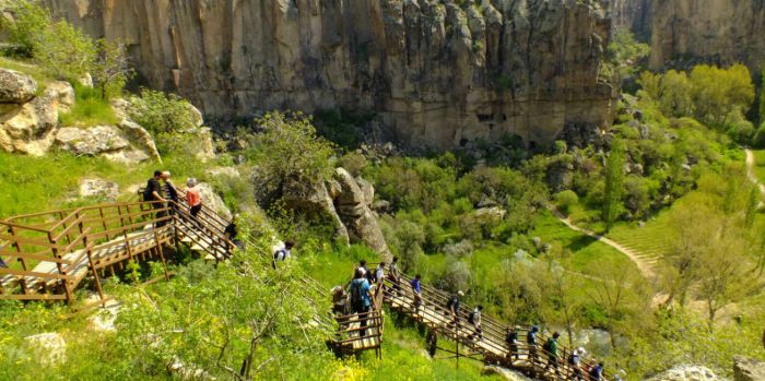 Kizilckur: is an isolated valley behind Urgup. It has beautiful rock formation with some great hidden rock-carved churches. The most interesting part of this area is the countless tracks connecting the small villages and towns through vineyards and gardens like a spider net. It is always possible to see villagers working in the area and offering grapes, apples or apricots to you.
